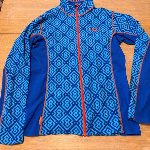 Kari Traa fleecejakke str. M. Litt innsvinget i midjen. Grønn / blå med mønster. Pent brukt.