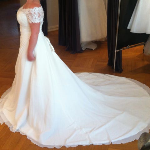 Bolero brukt til kjolen. Nydelige glassknapper i ryggen. Kr. 2500,-