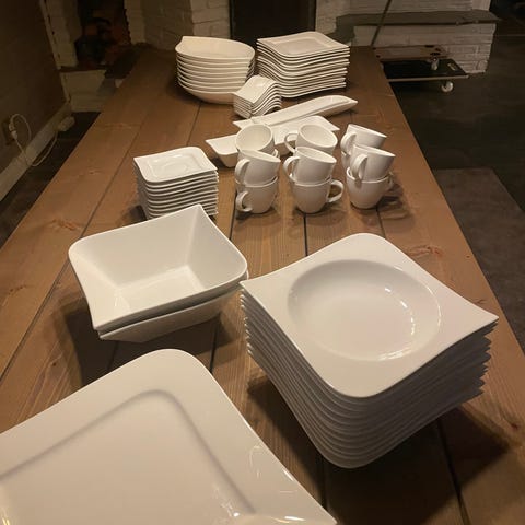 Pent brukt. Middag til 12, 12 asjetter, 12 skåler, men 11 kaffekopper, ellers alt som vises på bildet. Selges samlet. Høystbydene over 3000 kr