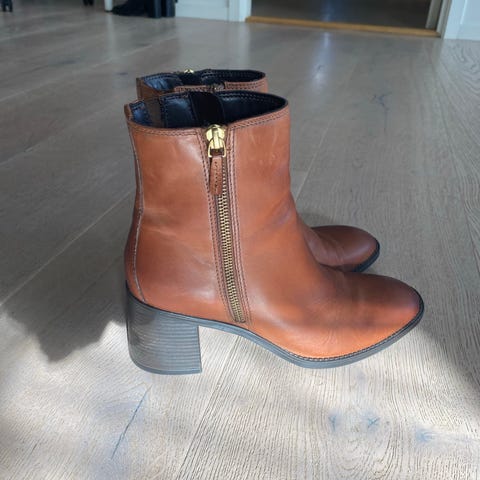 Helt nye skinnstøvletter. Kun brunt én gang. Litt smal passform i leggen.