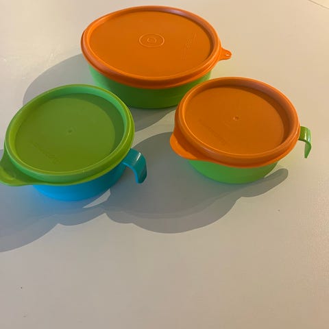 2 Tupperware 5452A Orange Flat Out Bowl With Lid 3 Cup 700 ml Collapsible