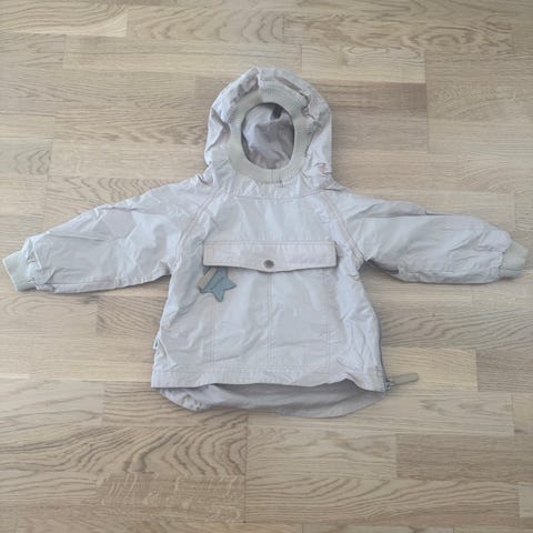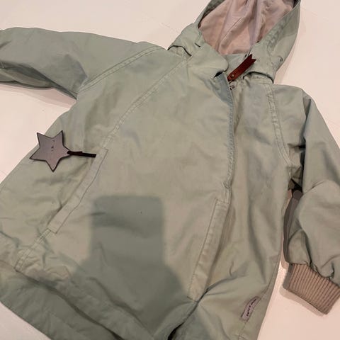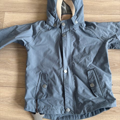 Selger denne fine jakken fra merket Mini Facts. Lommer både foran og bak. Ksnnstrsmmrs nederst. Ca. str. 98/104 (lengde 39 cm, bredde 39 cm, armlengde 29 (fra enden av skulderen). Merk: Et lite rødt merke nederst foran (se bilde).