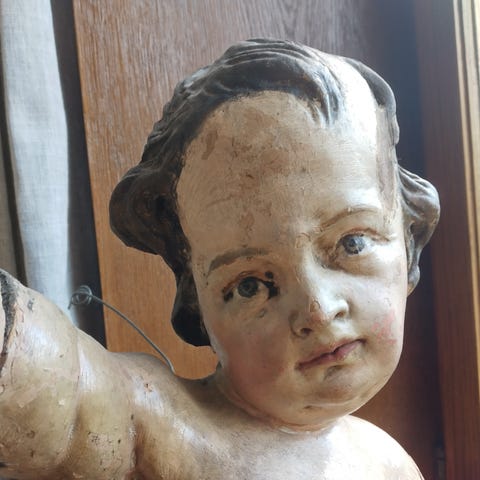 Dekorativt lite tablå med to identiske antikke dokker i dokkeseng fra rundt 1890/1920. Selges samlet. Fast pris. Sendes godt innpakket. Sengen er 40 cm lang.