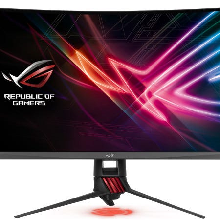 Selger en imponerende Asus Rog Strix XG32VQR 32" Curved gamingskjerm.