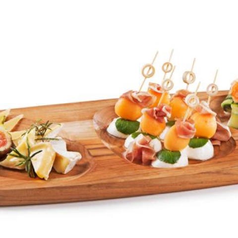 I skålene kan du ha marmelade, oliven eller annet. Fatet er i høybrent porselen som tåler 280C, og måler 41cm lengde, 25cm bredde.