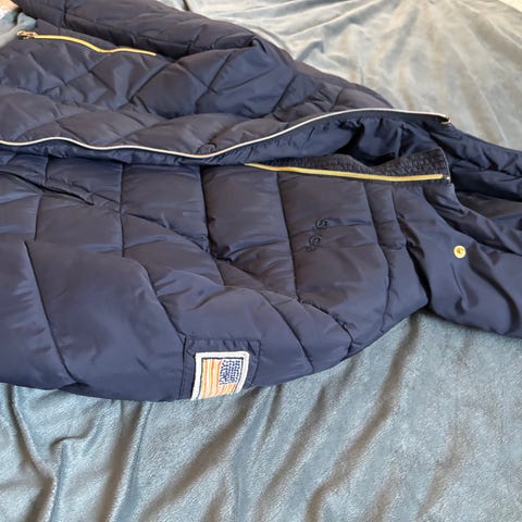 Nydelig blå ,lett vinterkåpe. Går til midt på låret,ca.