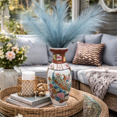 Vase med motiv av påfugl. Høyde 16 cm, diameter 11 cm. I god stand. Selges for 200,-