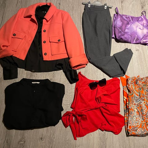 Håndsydd i Thailand dressjakke, bukse, skjørt og skorte. Betalte 4000 thai bath (litt over 1000 kr). Selger fordi nå bruker jeg "M" str. Brukte den bare en gang på ett bryllupp (skjørt er ikke brukt).