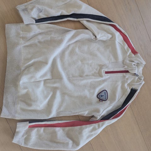 Tynn benhvit fleecegenser fra McKinley. Kjøpt på Intersport. Noen flekker kan forekomme. Godt brukt. Selges derfor billig. Størrelse S / 36.