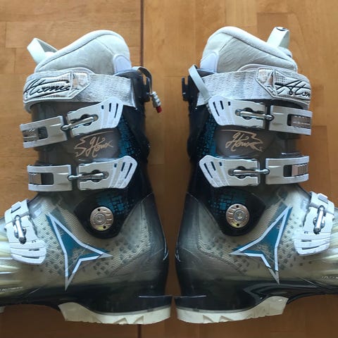 Lange Comp 60 Team, lyseblå alpinstøvler, str 23,5 og sålelengde 275, kr 200.
