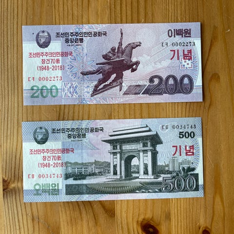 Diverse sedler. Nord-Korea, Syria, Venezuela og mange land