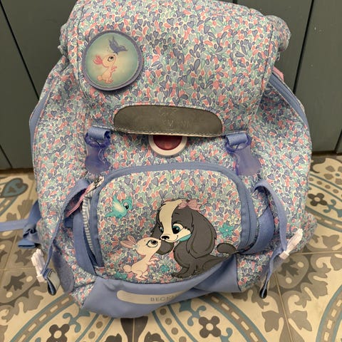 Ny og ubrukt barnehage-/tursekk. Merkelappen sitter fortsatt på.