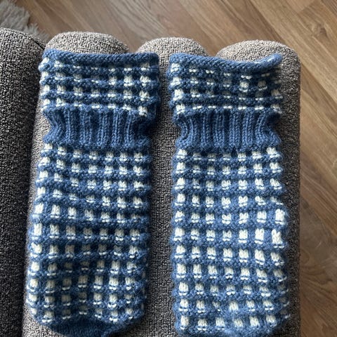 Hjemmestrikkede votter i tovet ull. Varme og gode. Passer dame ca hanskestr 6 1/2 evt 7