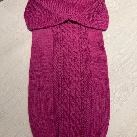 Strikket sovepose/sovesekk med nydelig mønster, knapper, fóret.