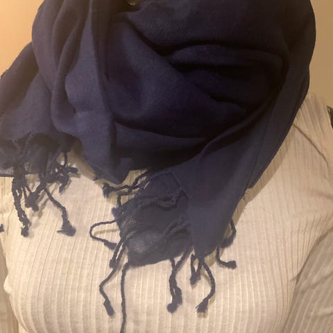 Marineblått ullskjerf m/tag. Ca L210 B50