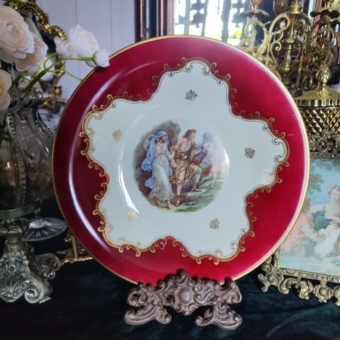 Vakkert Sevres antikk fat Håndmalt.Gull på kanten.Dia 24 cm.Selges hb.