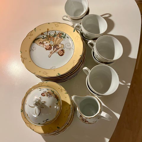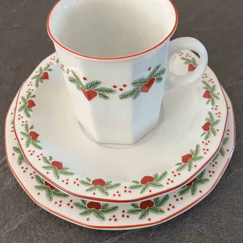 Ny pris 1074 selges for 500 kr da den ene store tallerken har ett kosmetisk skår på toppen ellers er det som ubrukt