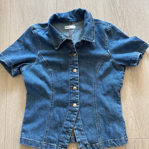 Nydelig skjorte i olajeans-materiale og vakker blå farge. Kort erm, avslappet og casual stil.