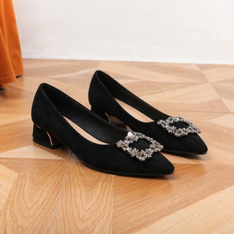 Ballerina med krystall dekket sølvspenne.
