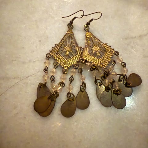 Søte øredobber med skjell, laget av vanlig blandingsmetall som er i de fleste smykker.
