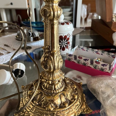 Vi har fått inn for salg en gammel sjelden lampe Merke Daup ??? Ø15 H 59 cm.