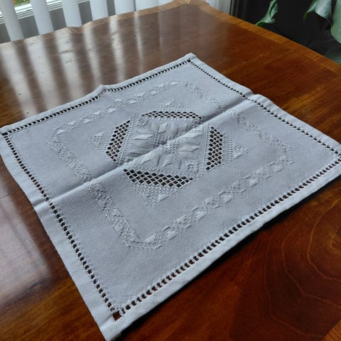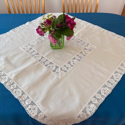 Vintage Nydeligt duk med hjertemønstet i kantene .