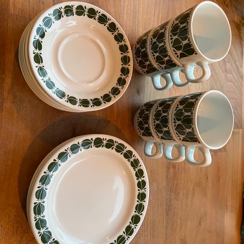 Skæl på to kaffekopper og en tallerken. Kan være med som jeg ikke har sett.
