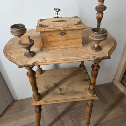 Antikt tobakksbord i original farge, fra ca 1920 selges. Er flott bord som bla kan brukes som et lite avlastningsbord eller et lampebord.