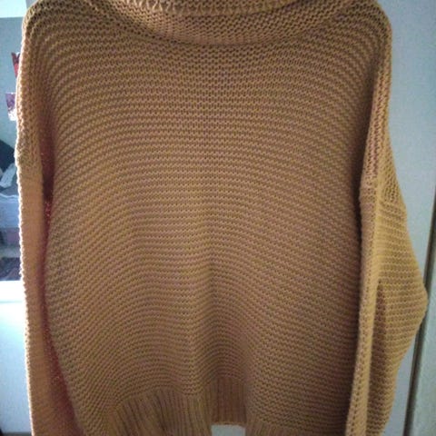 Lara hjemmestrikket genser i okergul
