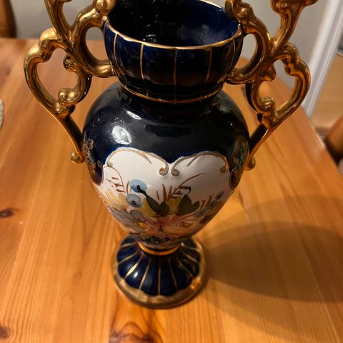 vase laget av bohemsk krystallblå kobolt . dekorert med farget rokokko lister, og 24 i gull.