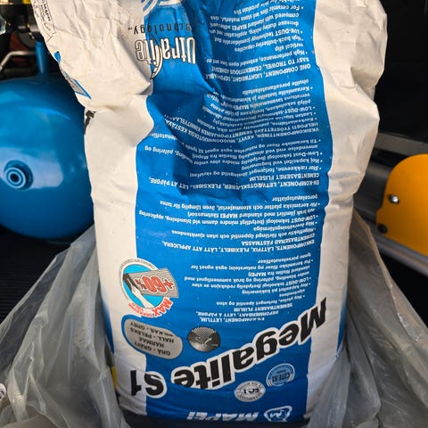 Dette er rest fra oppussingen. Har brukt mindre enn 1 kilo av 15 kilo.