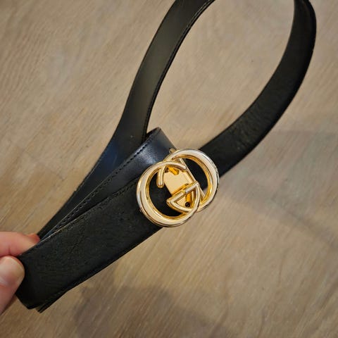Svart pent belte med gullspenne