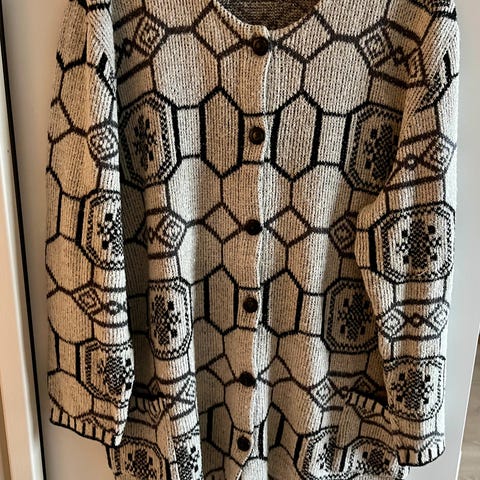 Fin jakke med riller, str 44 /46 i 50% bomull og 50% akryl. En hvit og en brun, en lilla, 299 pr stk