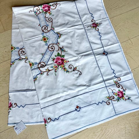 Hånd brodert vintage pyntehåndkle og løper . Pyntehåndkle er 108 cm • 56 cm . Løper er 97 cm •