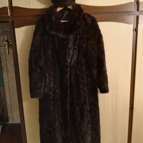 Flott grå persianerkåpe fra buntmaker Granlund og Paulsen. Ubetydelig brukt. Hatten er sydd av modist May Aubert som tidligere sydde hatter til Dronning Sonja.