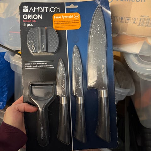 5 Kniver med hvite skaft selges