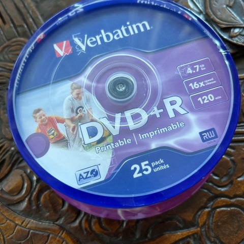 Nye Verbatim DVD+R 4,7GB 16x 25-pakning Spindel, 25-STK. - Gi BUD!