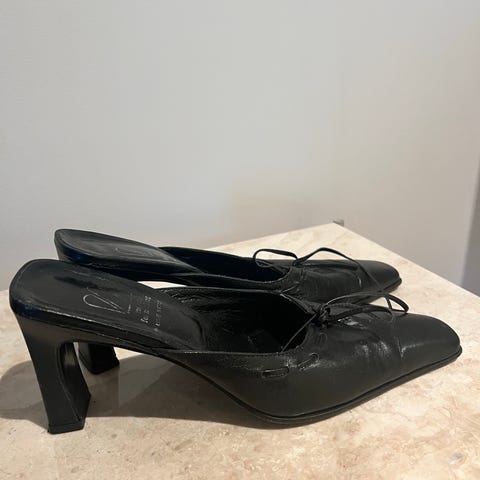 Veldig fine Italienske kvalitets sko i skinn til dame str 36. Brukt maks 3 ganger. Man må ha tynn legg for disse skoene. Skaftvidde -34cm.