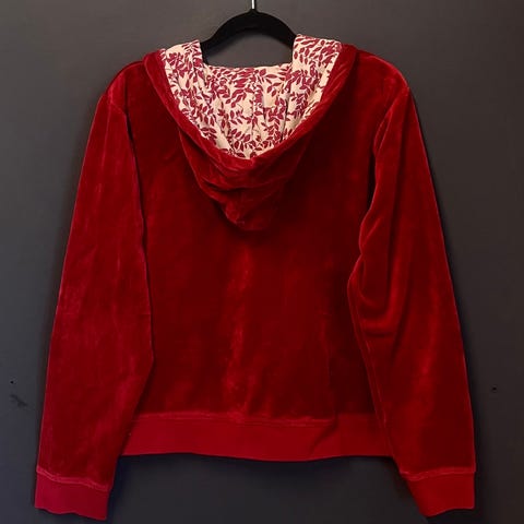 Ubetydelig brukt, som ny, rød velour-jakke fra Cubus str. M, selges kr. 150,-