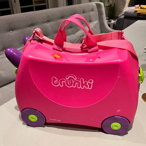 Selger en pent brukt trillekoffert til barn fra Trunki er med stropp.
