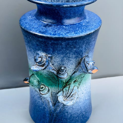 Mindre vase, porselen, håndmalt. Høyde: 15cm. (Se gjerne mine andre annonser også)