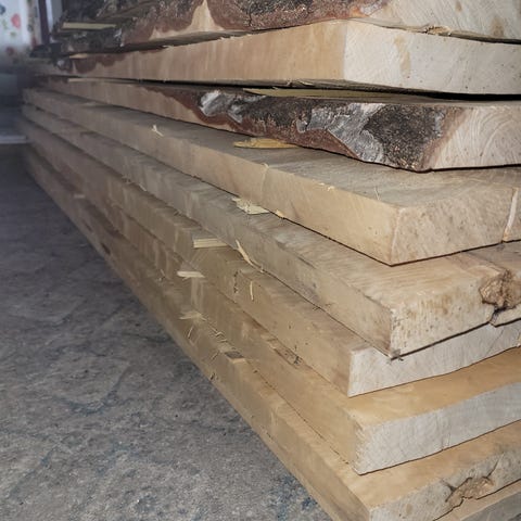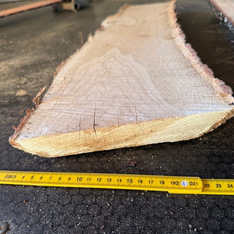 Treet er hogd for ca 1 år siden og skåret opp 23. 01.2024. Prisen gjelder nå for utørket materiale.