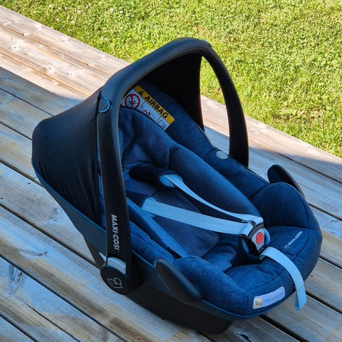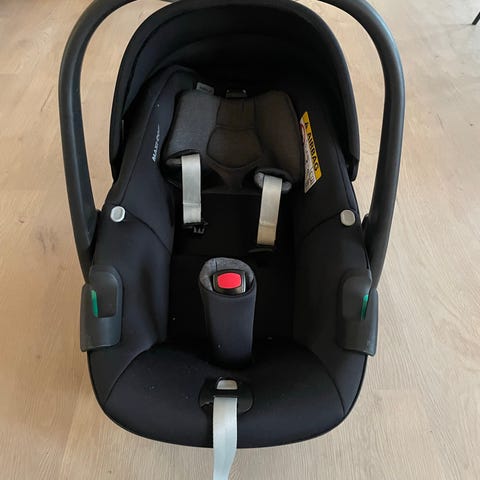 Maxi Cosi Pebble bilstol med FamilyFix base (ISO-fix). Stolen kan både brukes med basen eller med vanlig bilbelte.