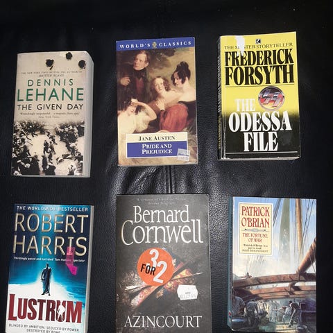 Pocketbøkene selges for kr. 10 pr. stykk. Alle bøkene er komplette og fra et røykfritt hjem. De er i god stand men med varierende tegn på slitasje.