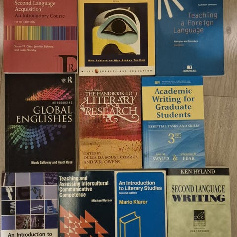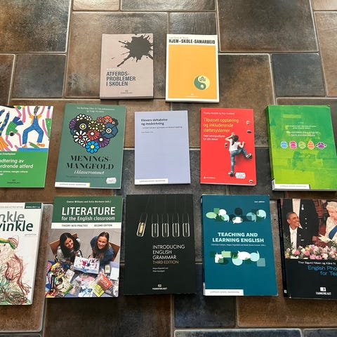 Selger et utvalg av bøker fra masterstudiet fremmedspråk i skolen, engelsk. De er pent brukt og inneholder noen markeringer