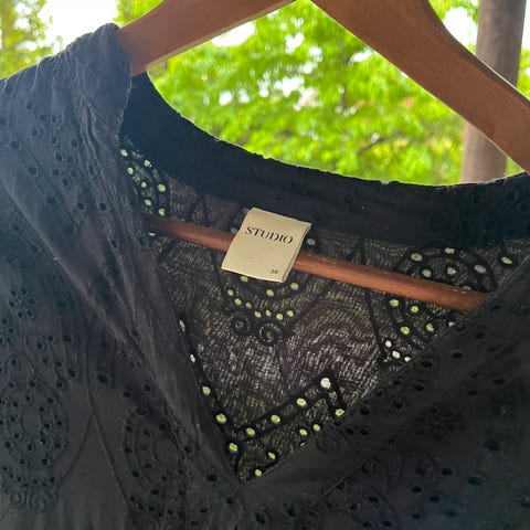 Kjole i blonder med blomster detaljer. Fra H&M i Milano for en del år siden. Brukt to ganger. Str. 11-12 år, brukt som S også.