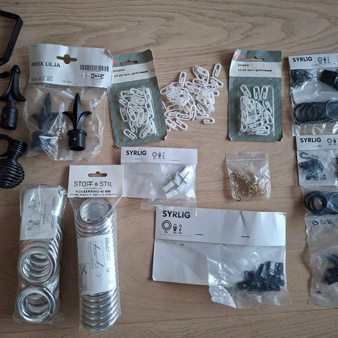 Pent brukt opphengere for gardiner 150cm lang men svart kan forlenges. Begge ender er like. Hvitt er solgt. Kan tilby gratis levering i Oslo.