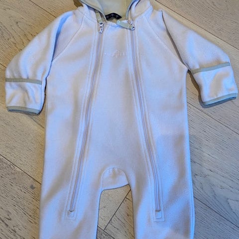 Søt hvit og beige teddydress / heldress i str. 68 fra H&M med søte ører på hetta 🧸 Lite og fint brukt - kan ikke se noen andre bruksmerker enn litt nupper på de beige partiene ☺️