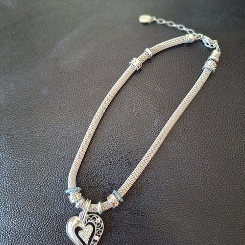 Nydelig hjertesmykke med semsket lenke, syntetiske stener/bling