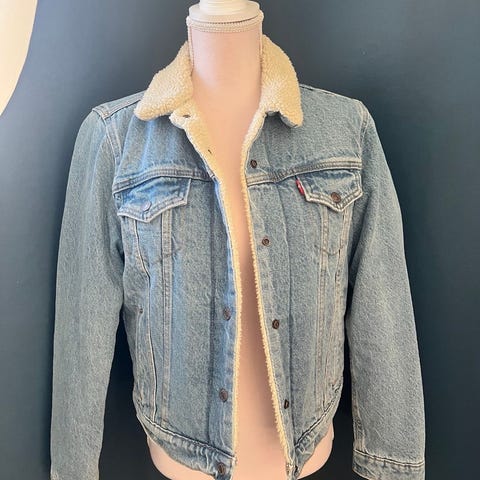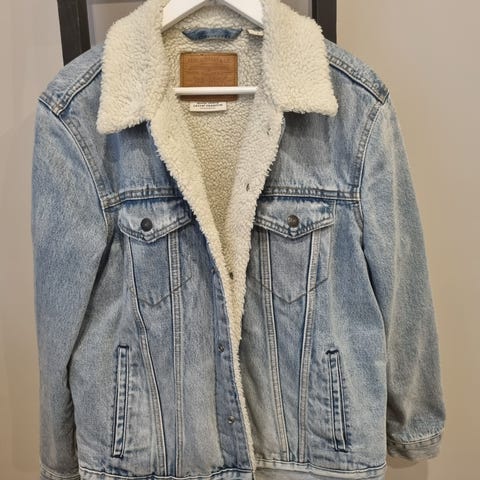 Vurderer å selge en pent og veldig lite brukt Levi's denimjakke med mykt og varmt sherpafôr.